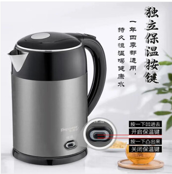 安博爾 電熱水壺?zé)畨?L大容量家用一鍵保溫 304不銹鋼 雙層防燙 HB-3250G(2L)保溫款